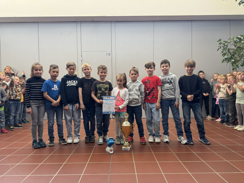 "So sehen Sieger aus!" singen die Schülerinnen und Schüler der Grundschule Förderstedt während der Siegehrung. Wie auch im letzten Jahr konnte sich der Sieg gesichert werden. Viele motivierte Läuferinnen und Läufern gaben über 1,5 km alles und das wurde belohnt.